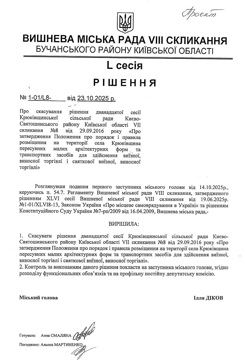 Порядок розміщення об’єктів зовнішньої реклами у м.Вишневому