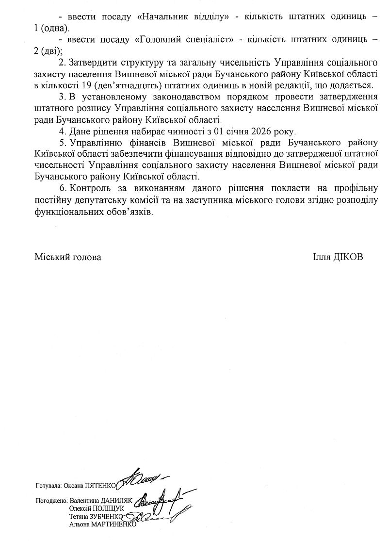 Персональний склад виконавчого комітету Вишневої міської ради VІІІ скликання