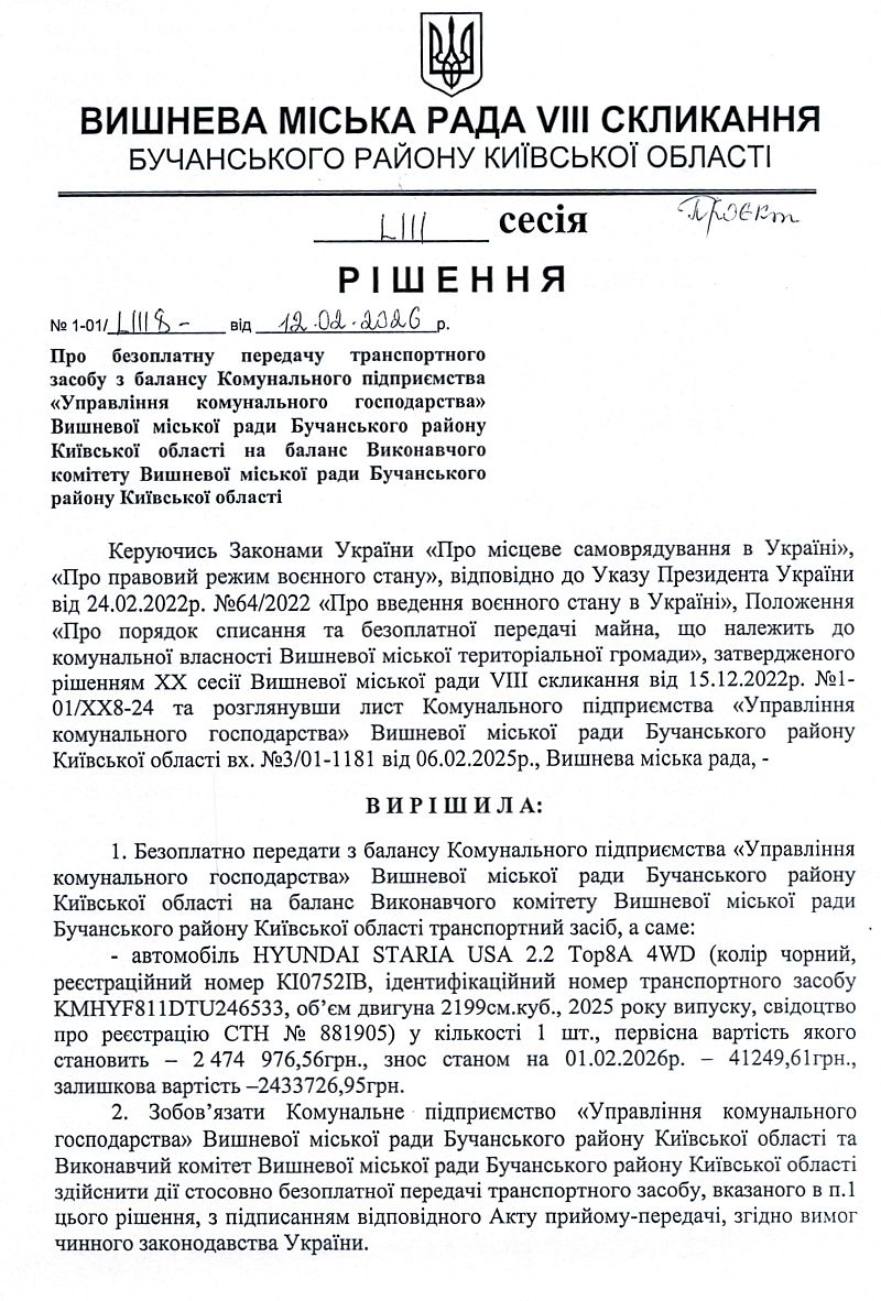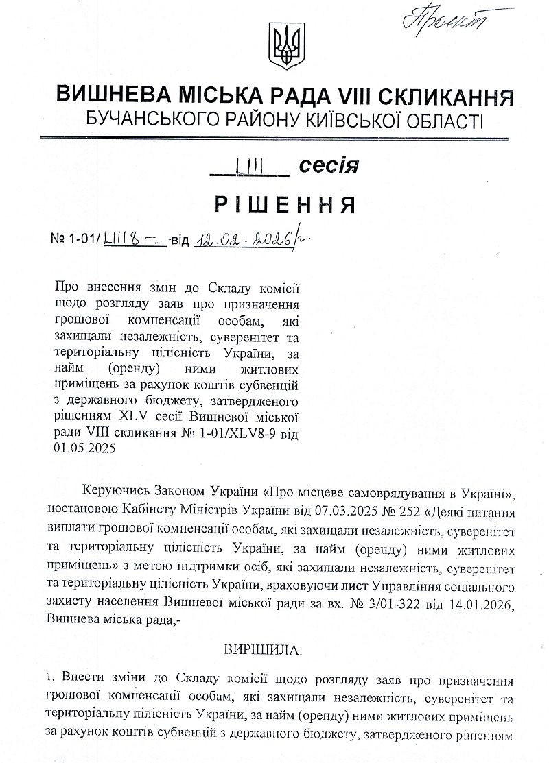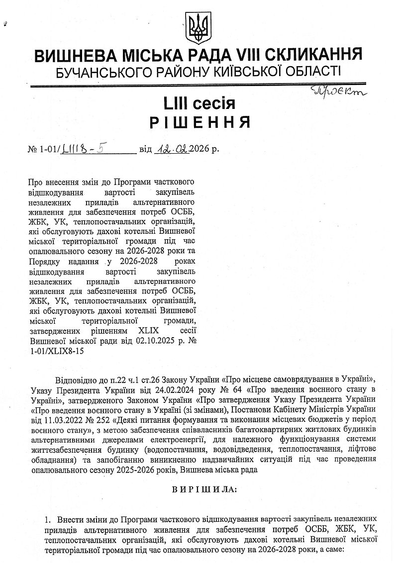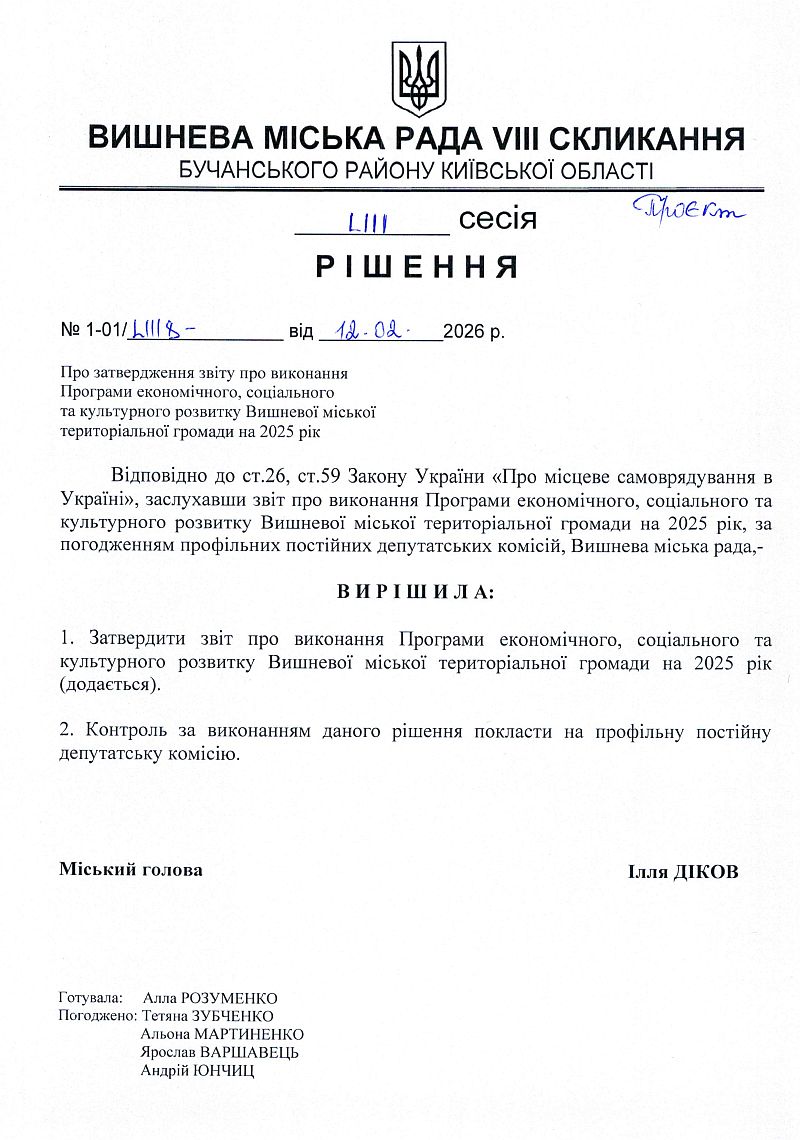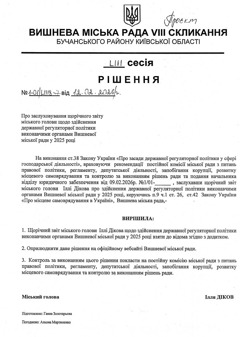 Проекти рішень LІIІ сесіЇ VIІI скликання