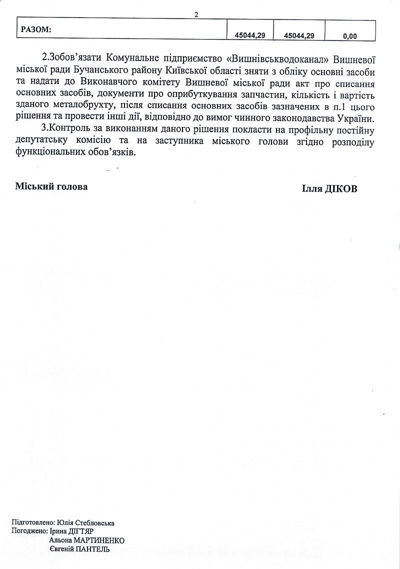 Персональний склад виконавчого комітету Вишневої міської ради VІІІ скликання