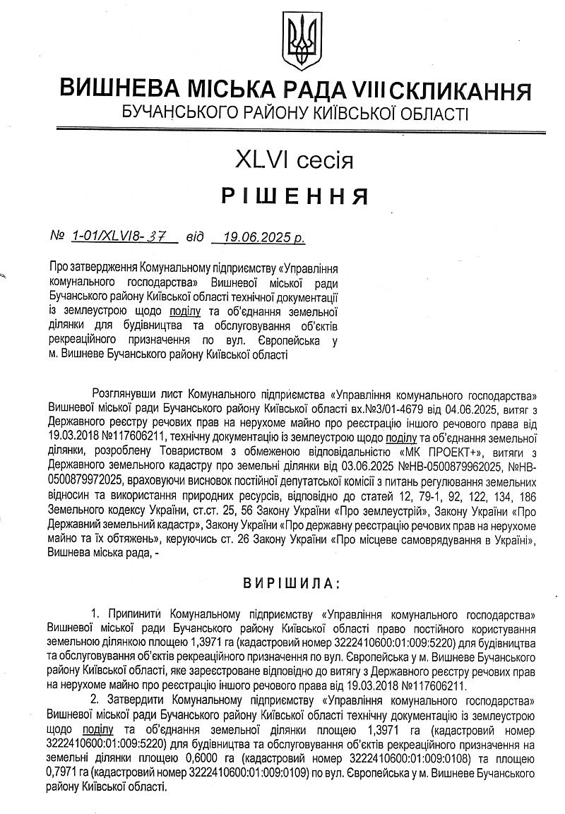 РІШЕННЯ ХLVІ СЕСІЇ VIІІ СКЛИКАННЯ від 19.06.2025 року