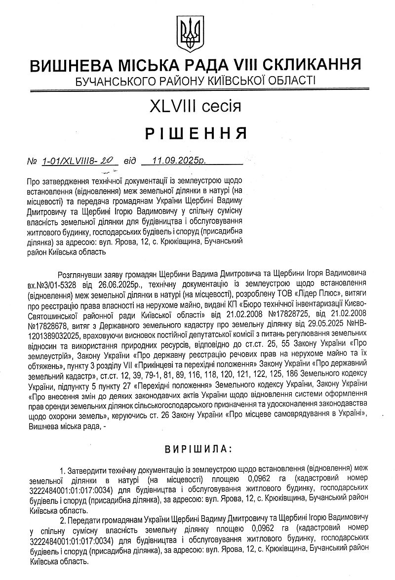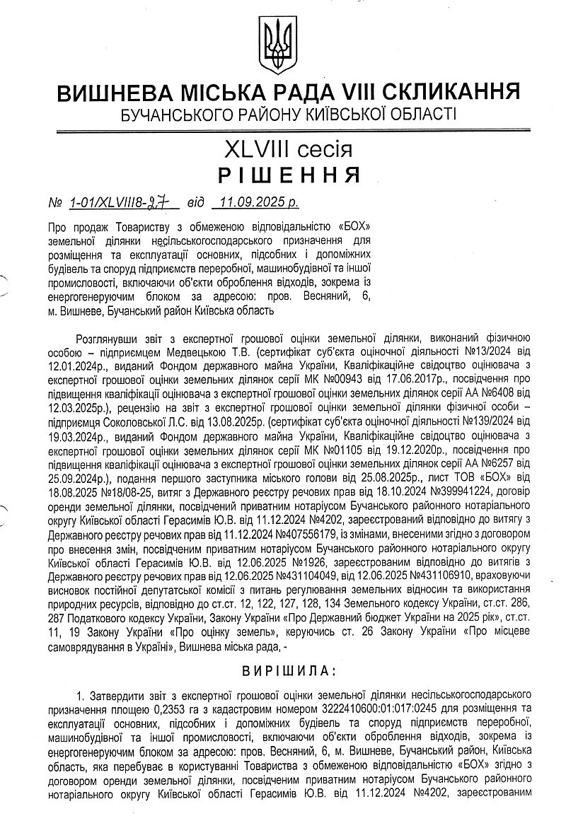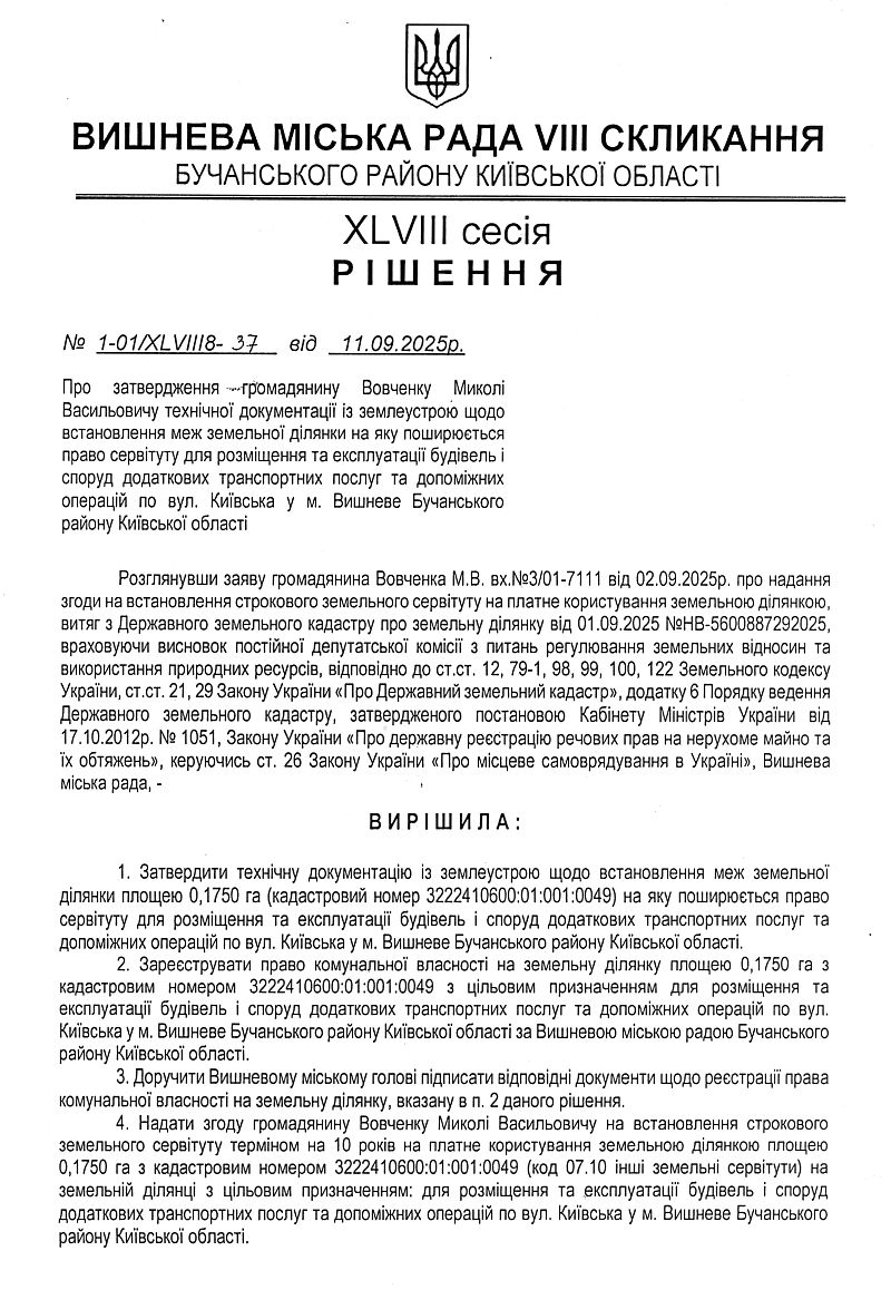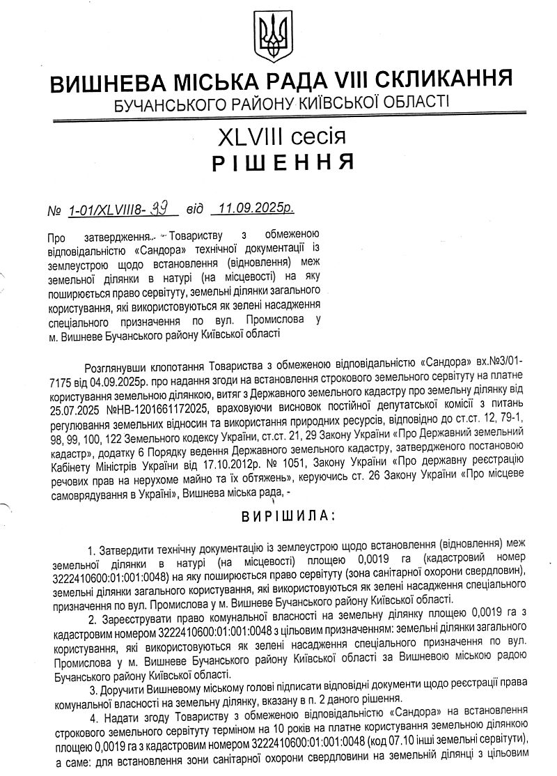 РІШЕННЯ ХLVІІІ СЕСІЇ VIІІ СКЛИКАННЯ від 11.09.2025 року