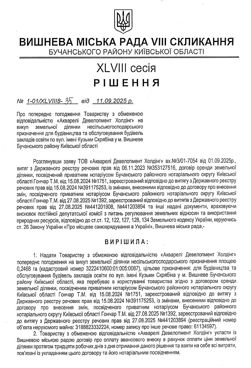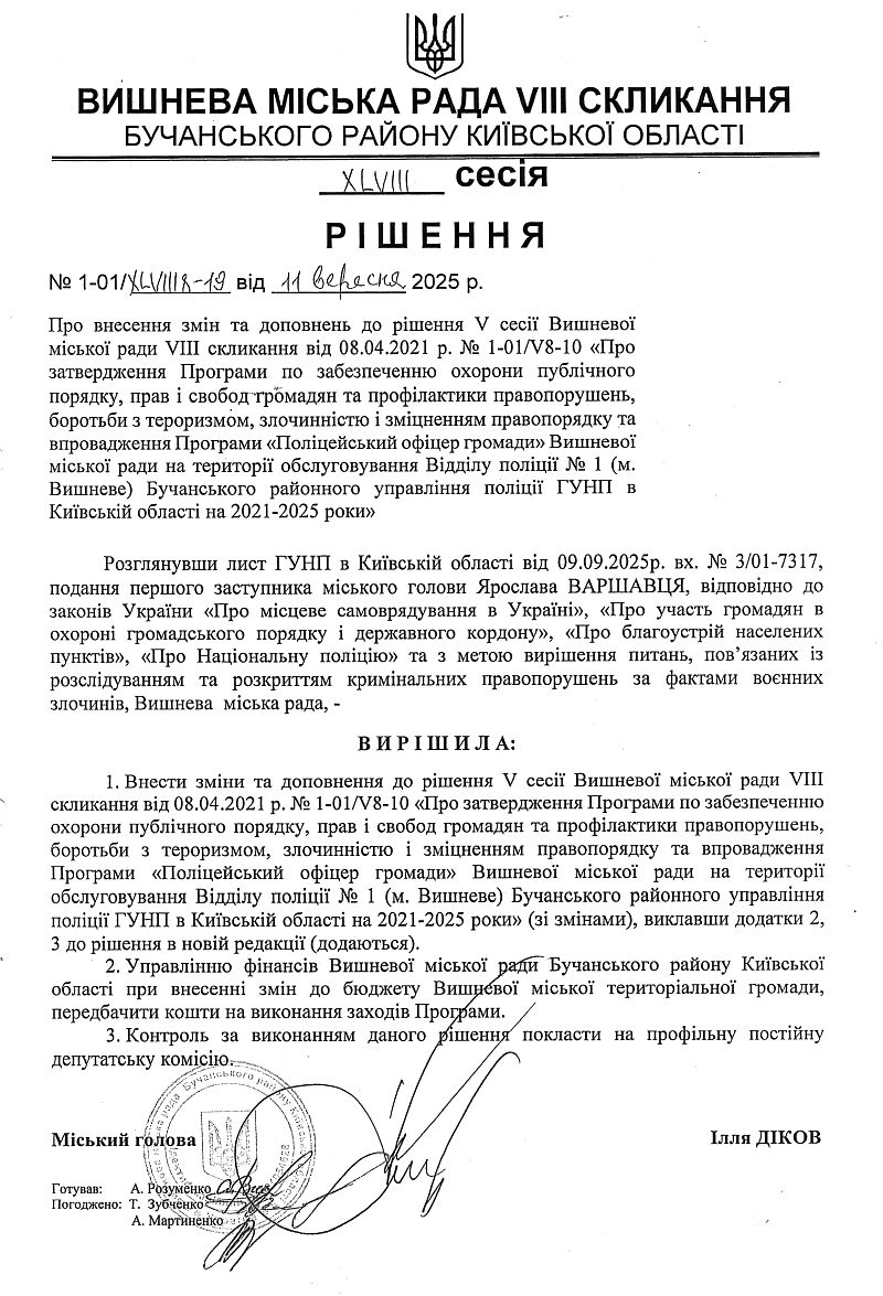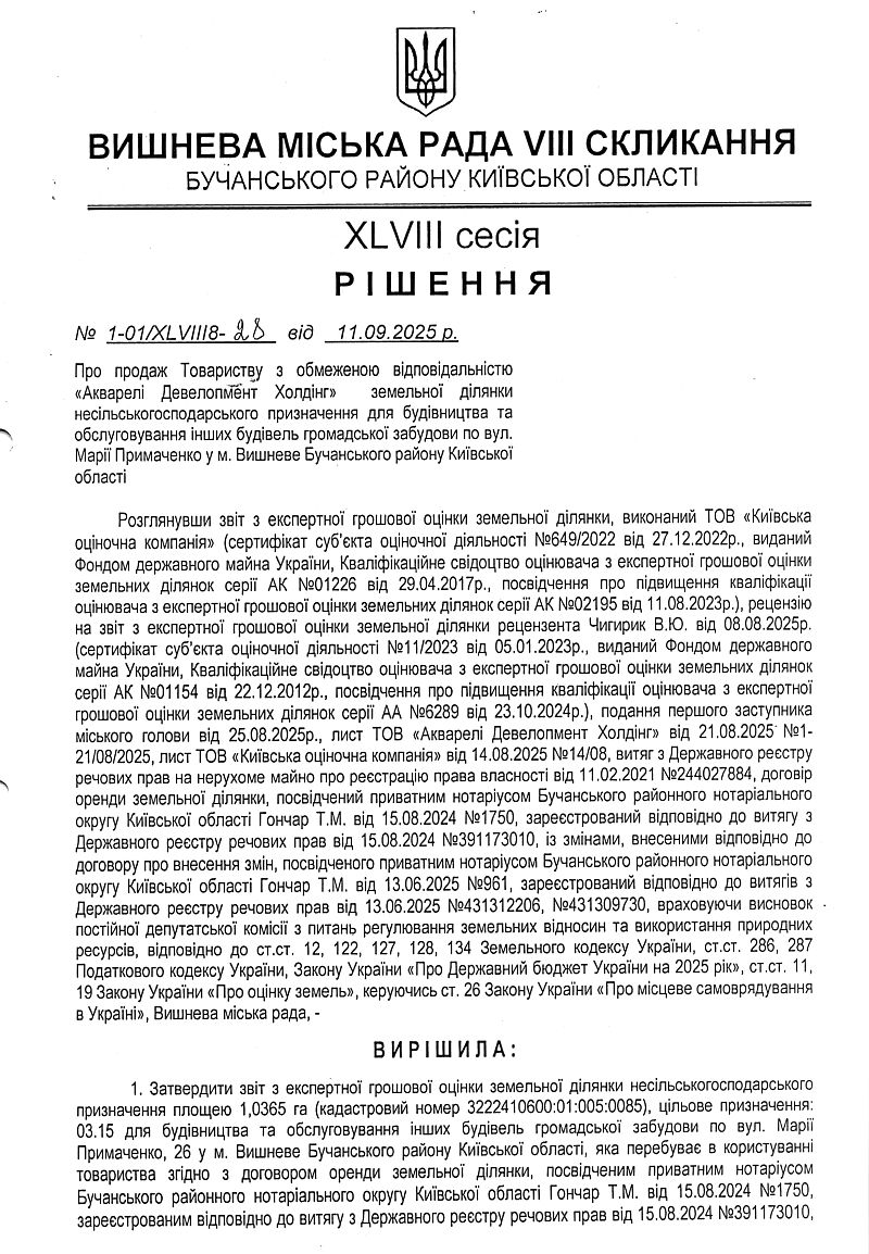 РІШЕННЯ ХLVІІІ СЕСІЇ VIІІ СКЛИКАННЯ від 11.09.2025 року