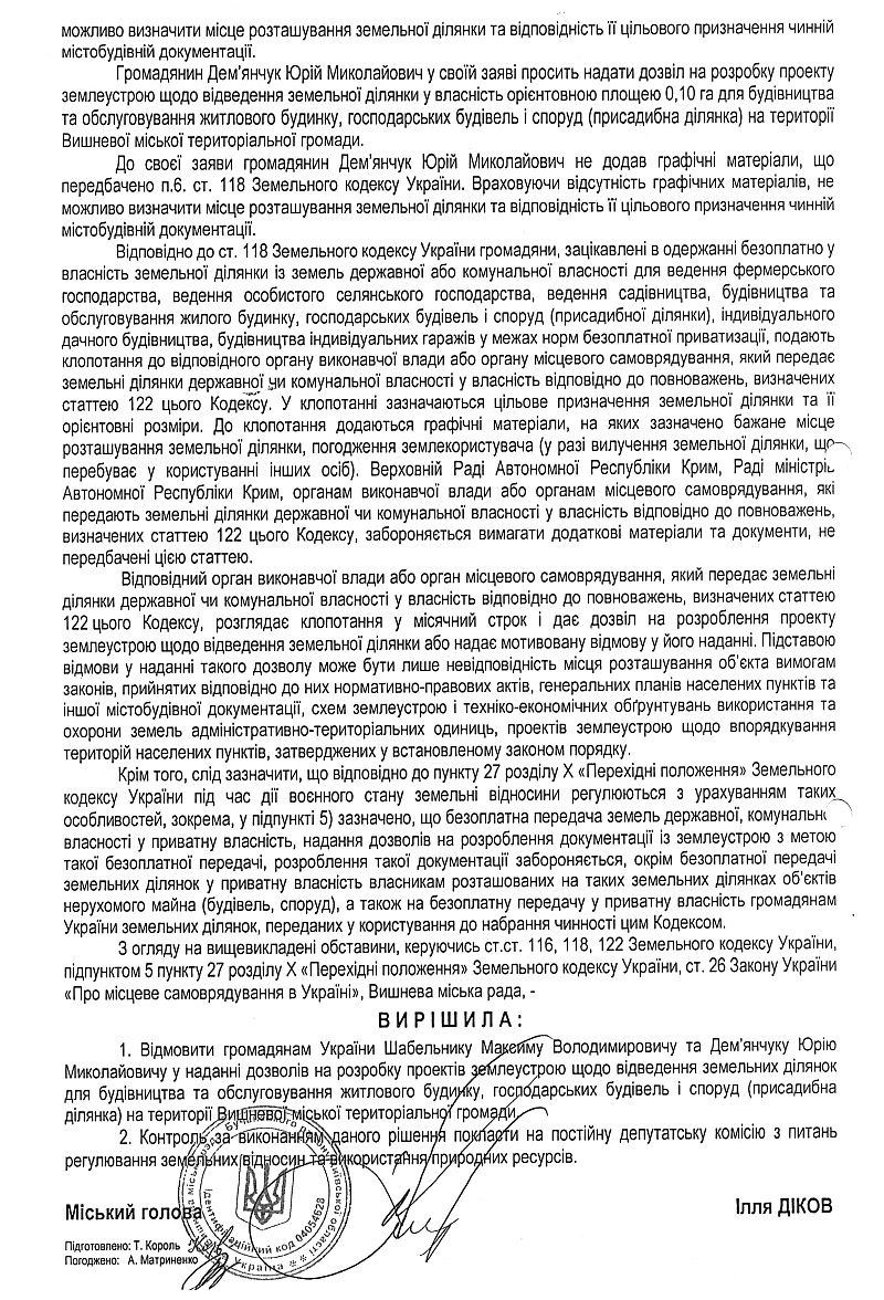 Контактні дані для звернень громадян Вишневої міської територіальної громади