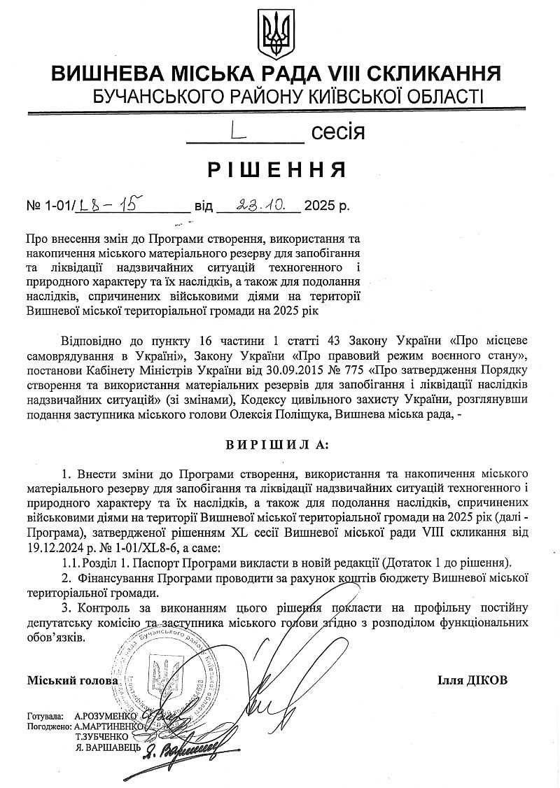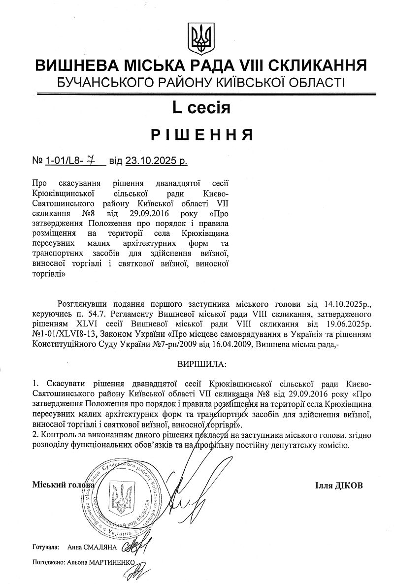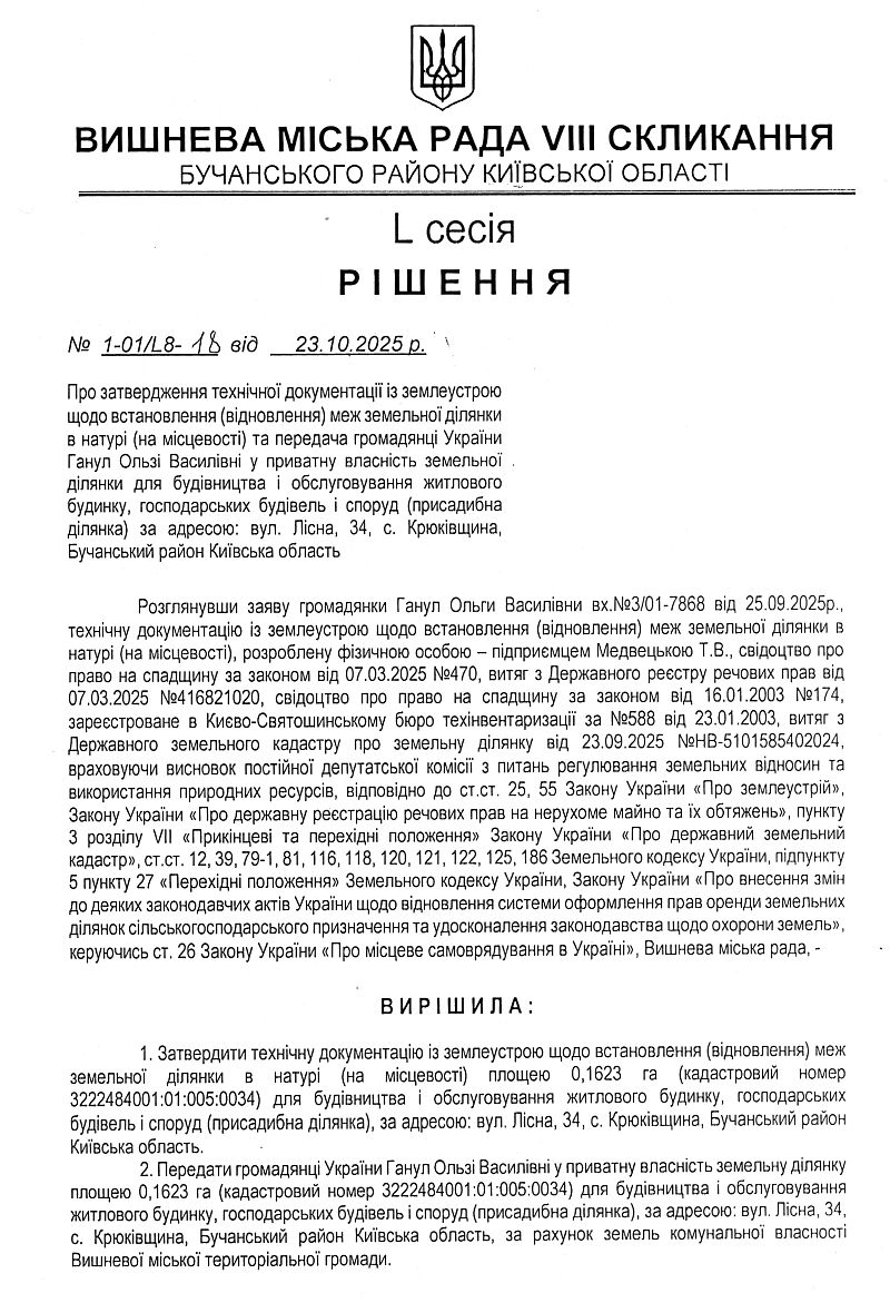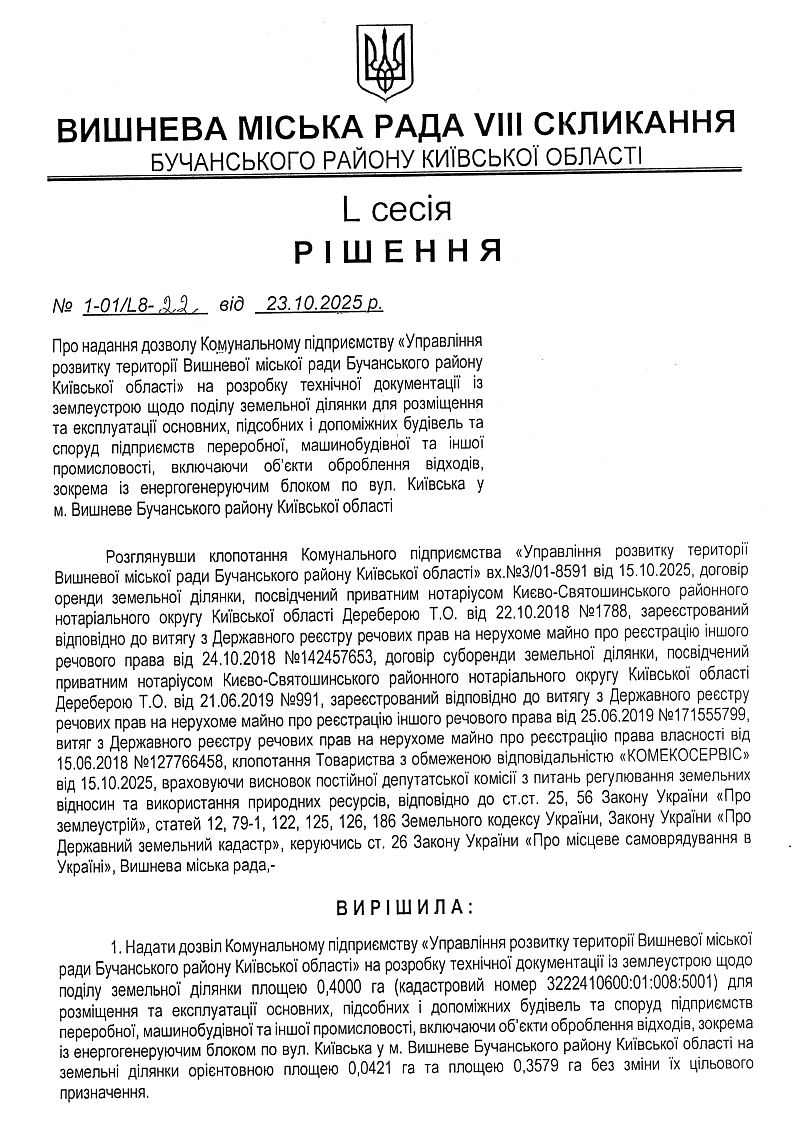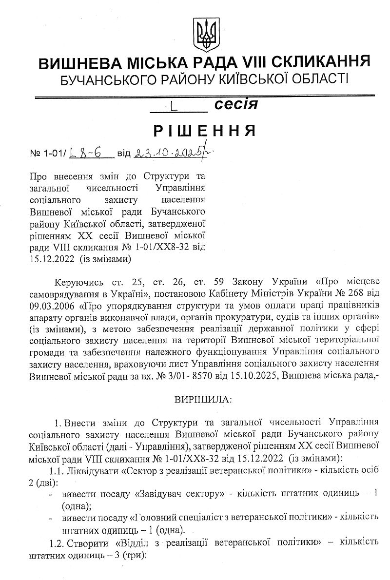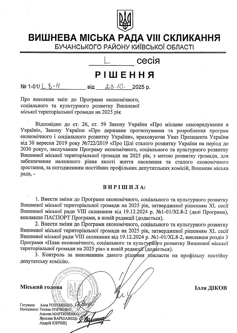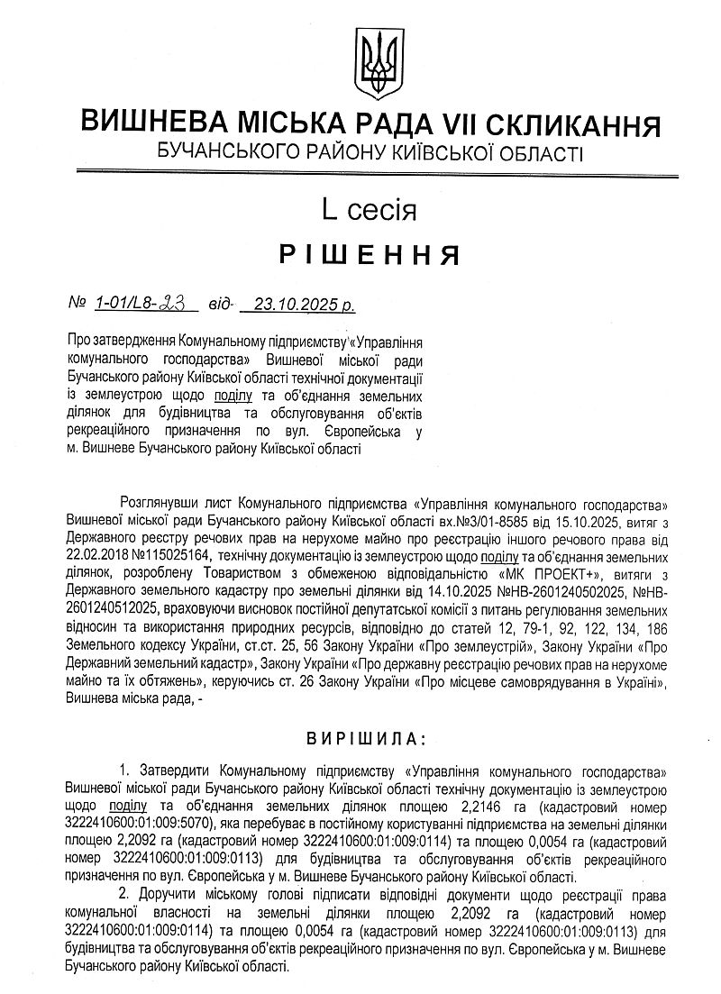 РІШЕННЯ L СЕСІЇ VIІІ СКЛИКАННЯ від 23.10.2025 року