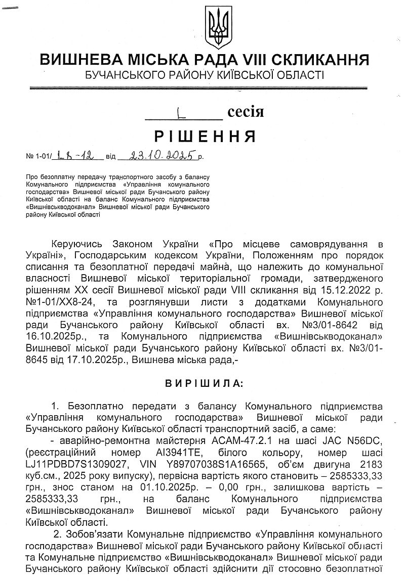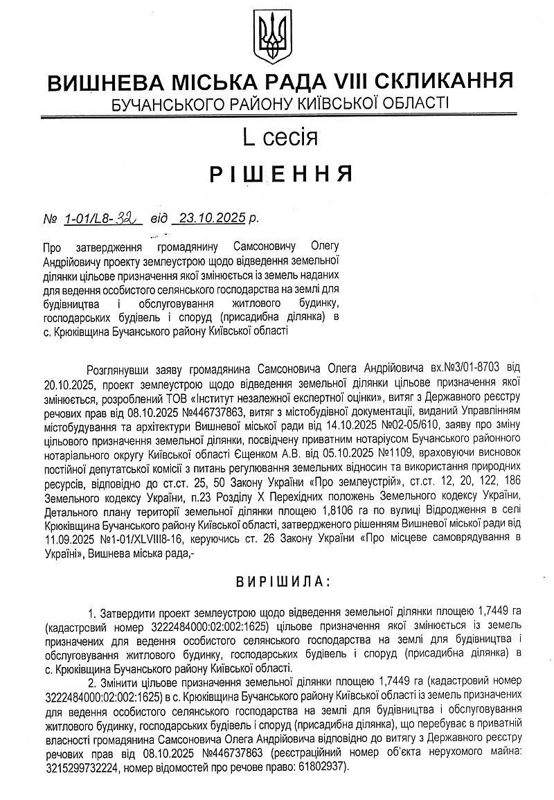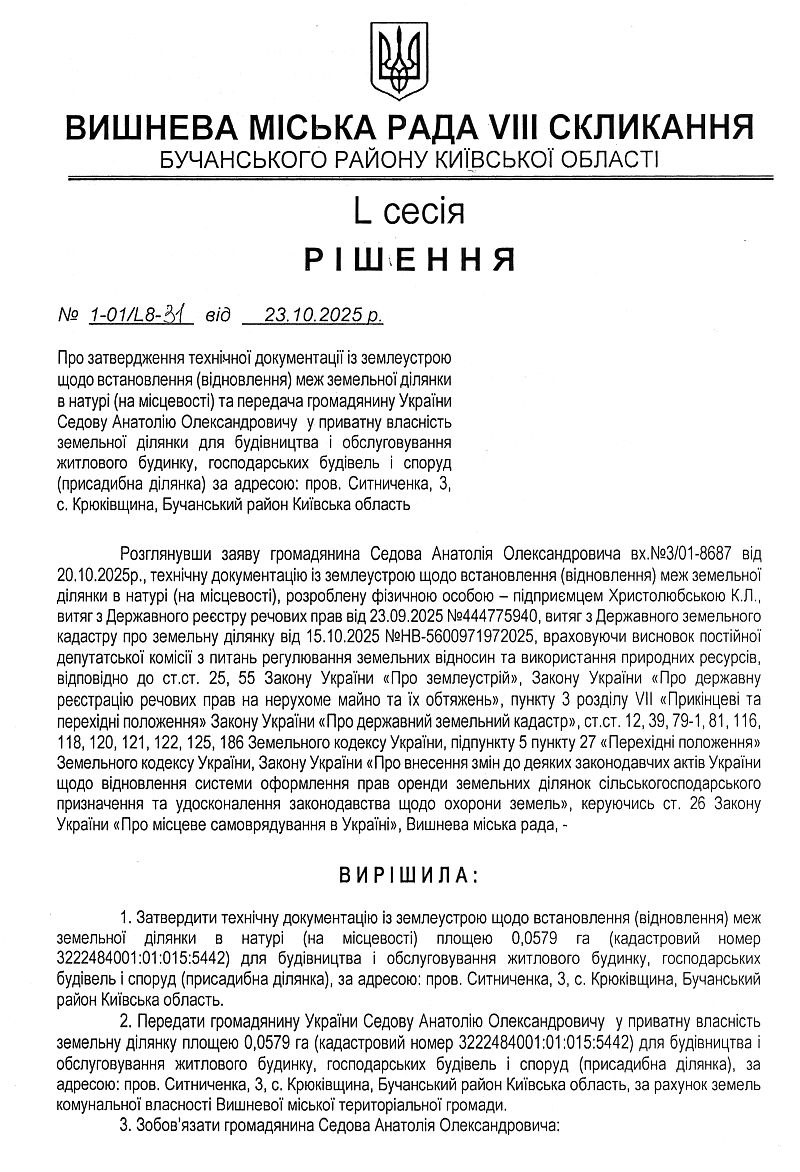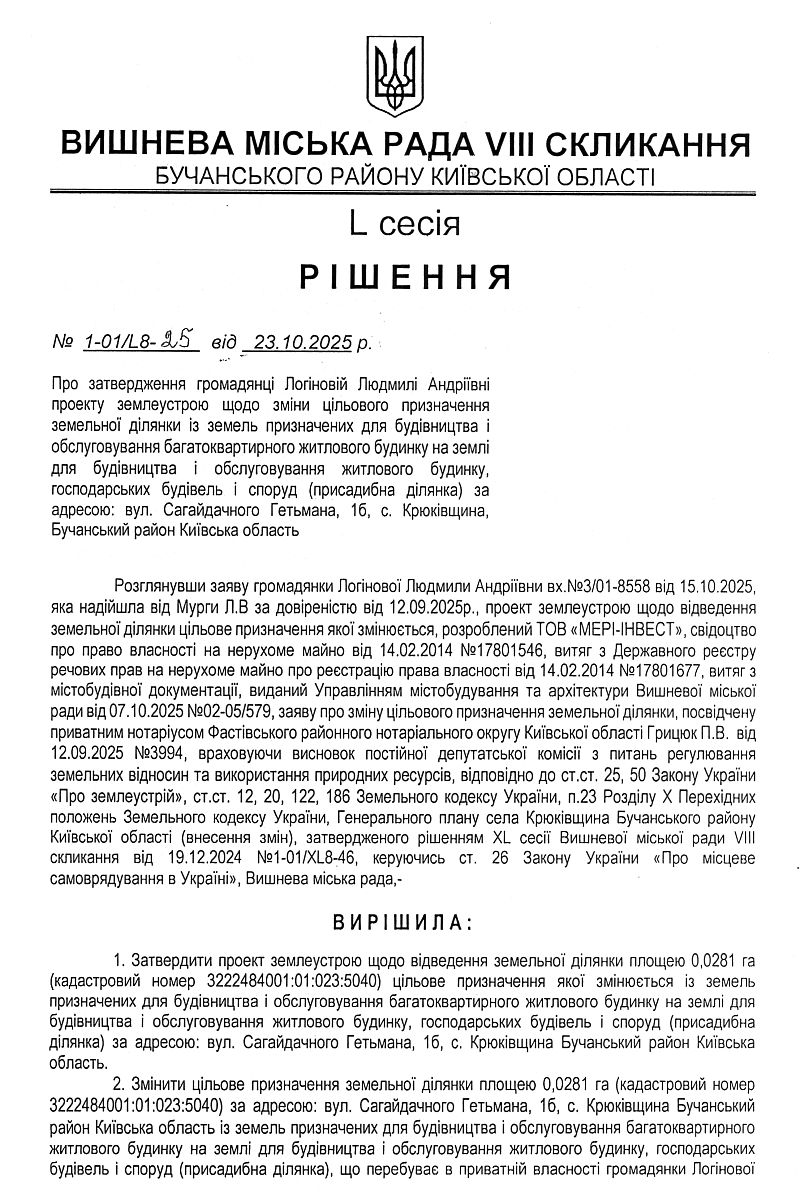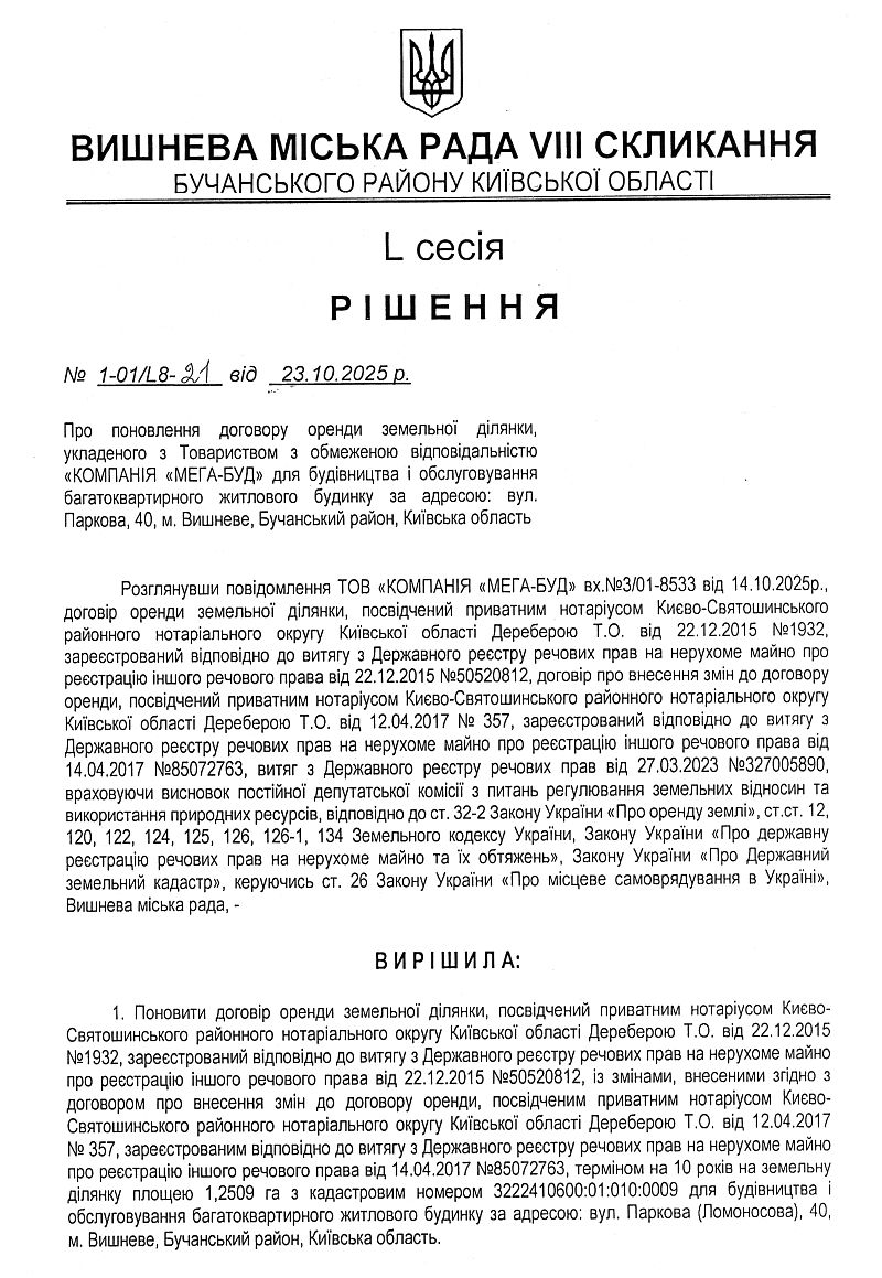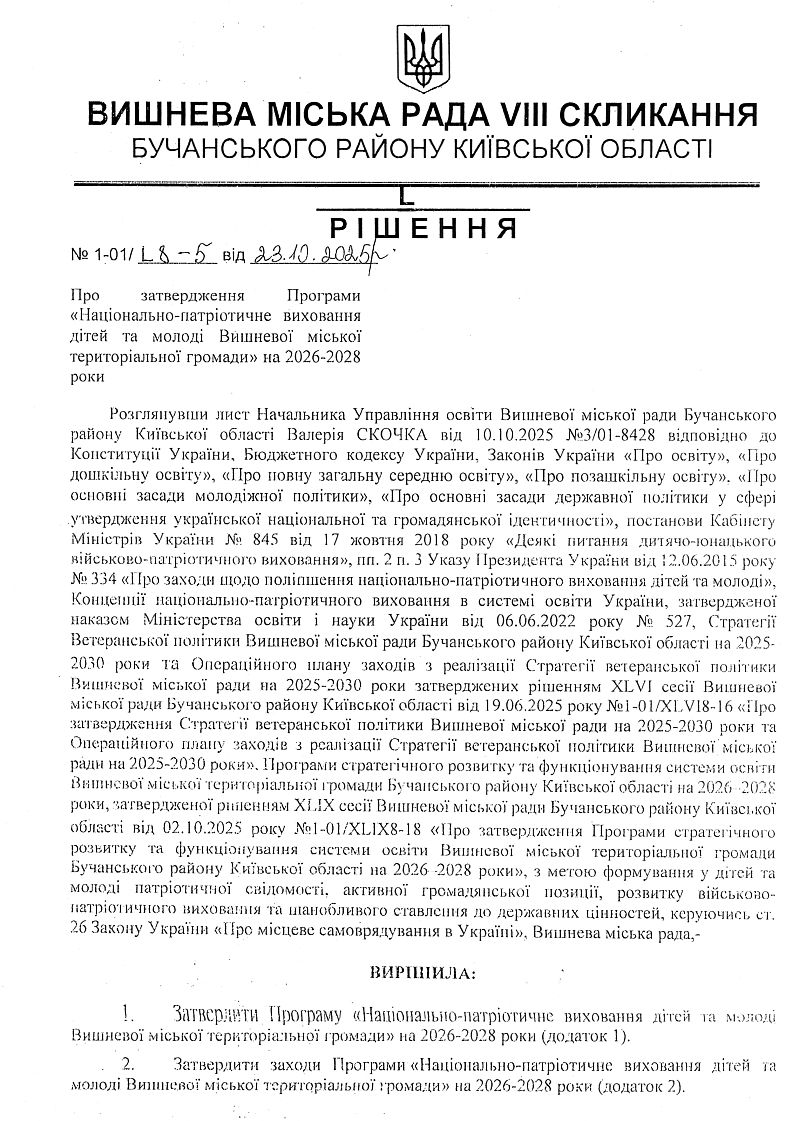 РІШЕННЯ L СЕСІЇ VIІІ СКЛИКАННЯ від 23.10.2025 року