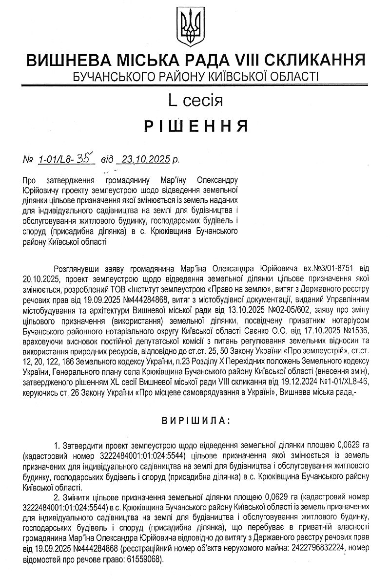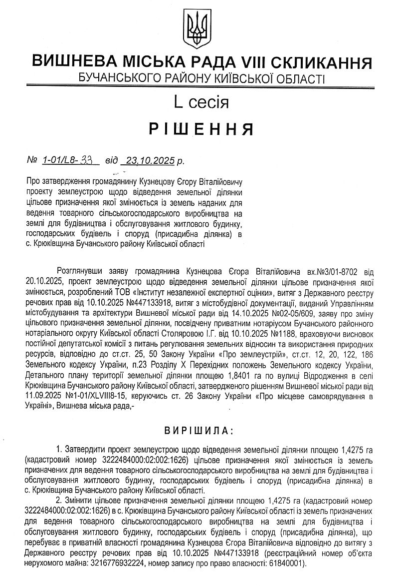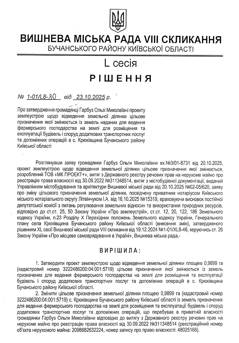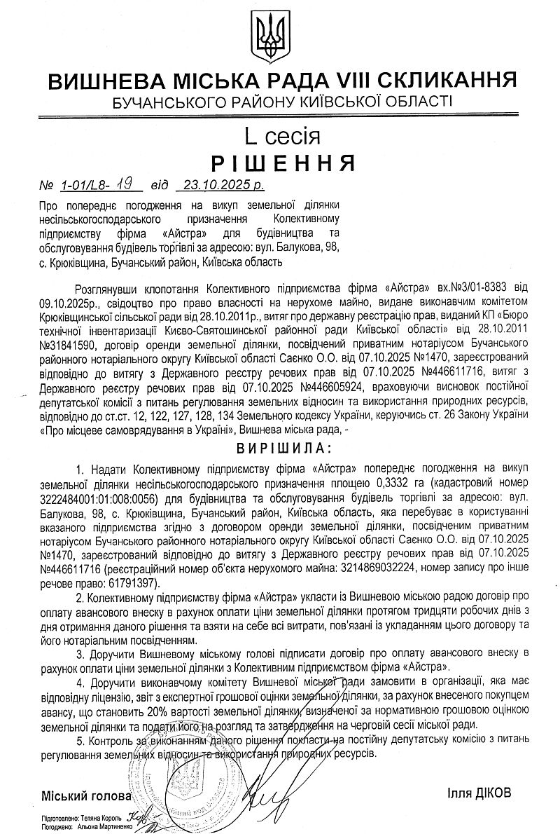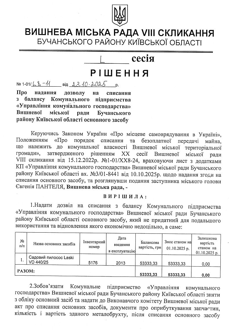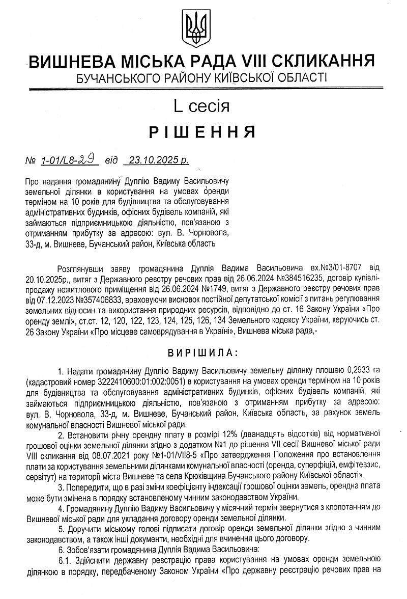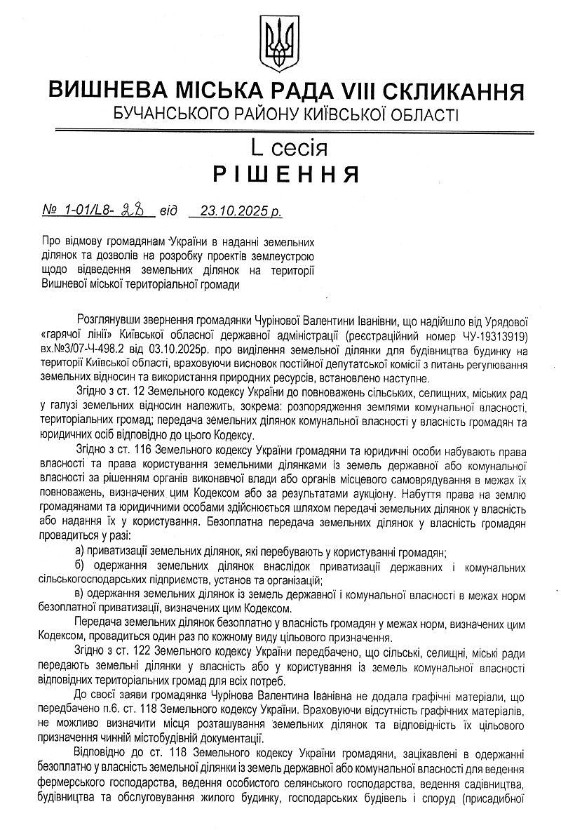 РІШЕННЯ L СЕСІЇ VIІІ СКЛИКАННЯ від 23.10.2025 року
