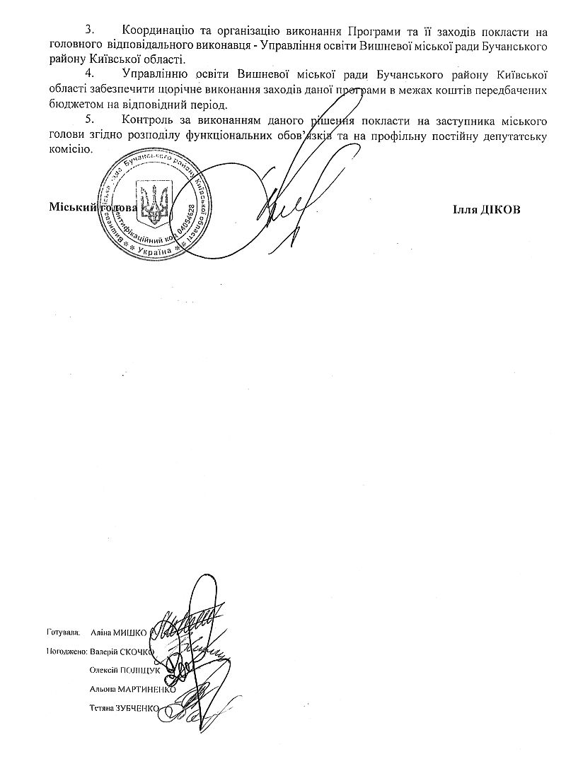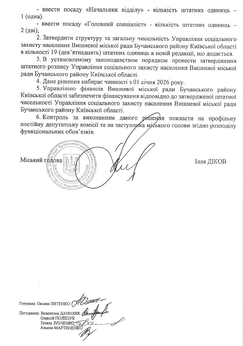 Персональний склад виконавчого комітету Вишневої міської ради VІІІ скликання