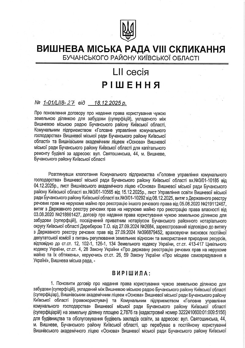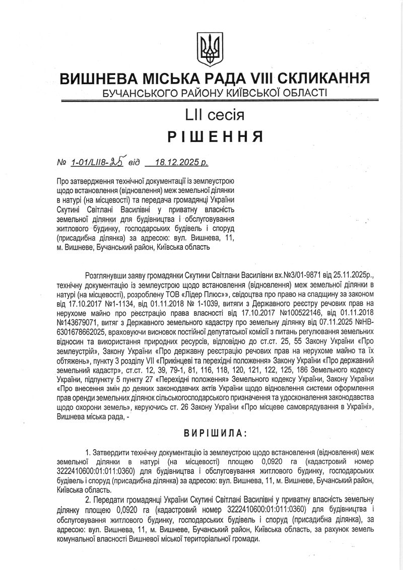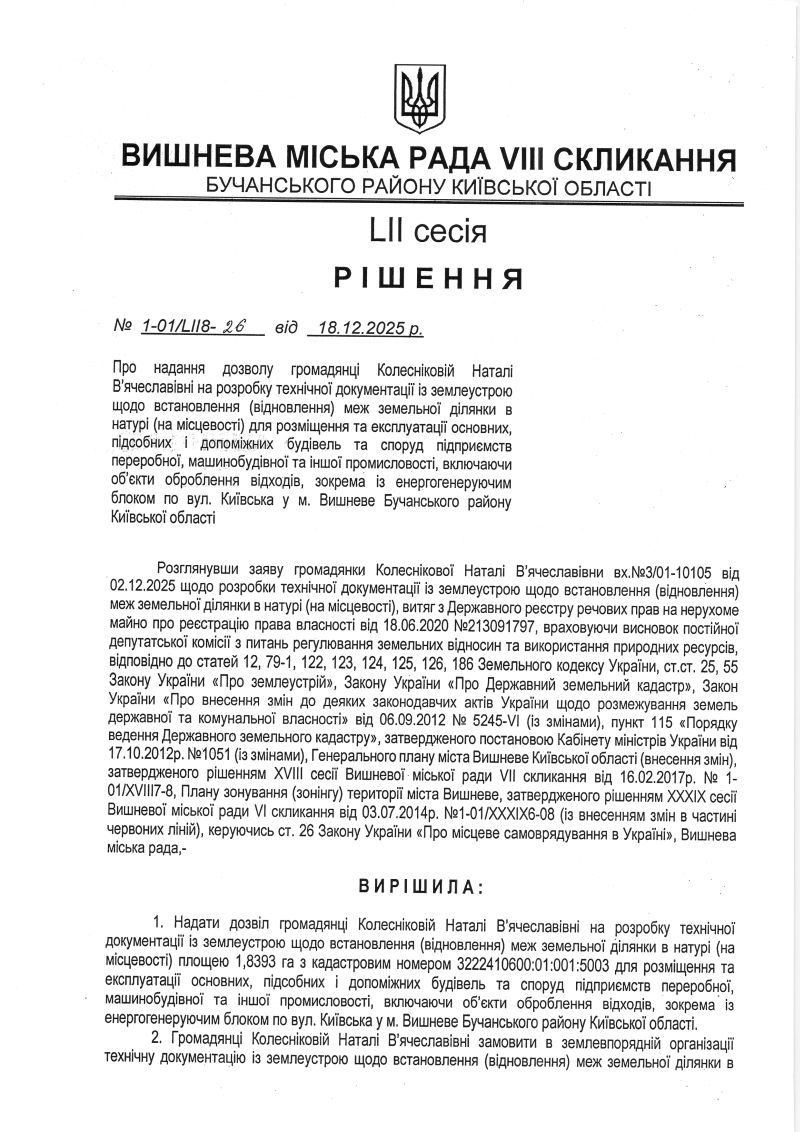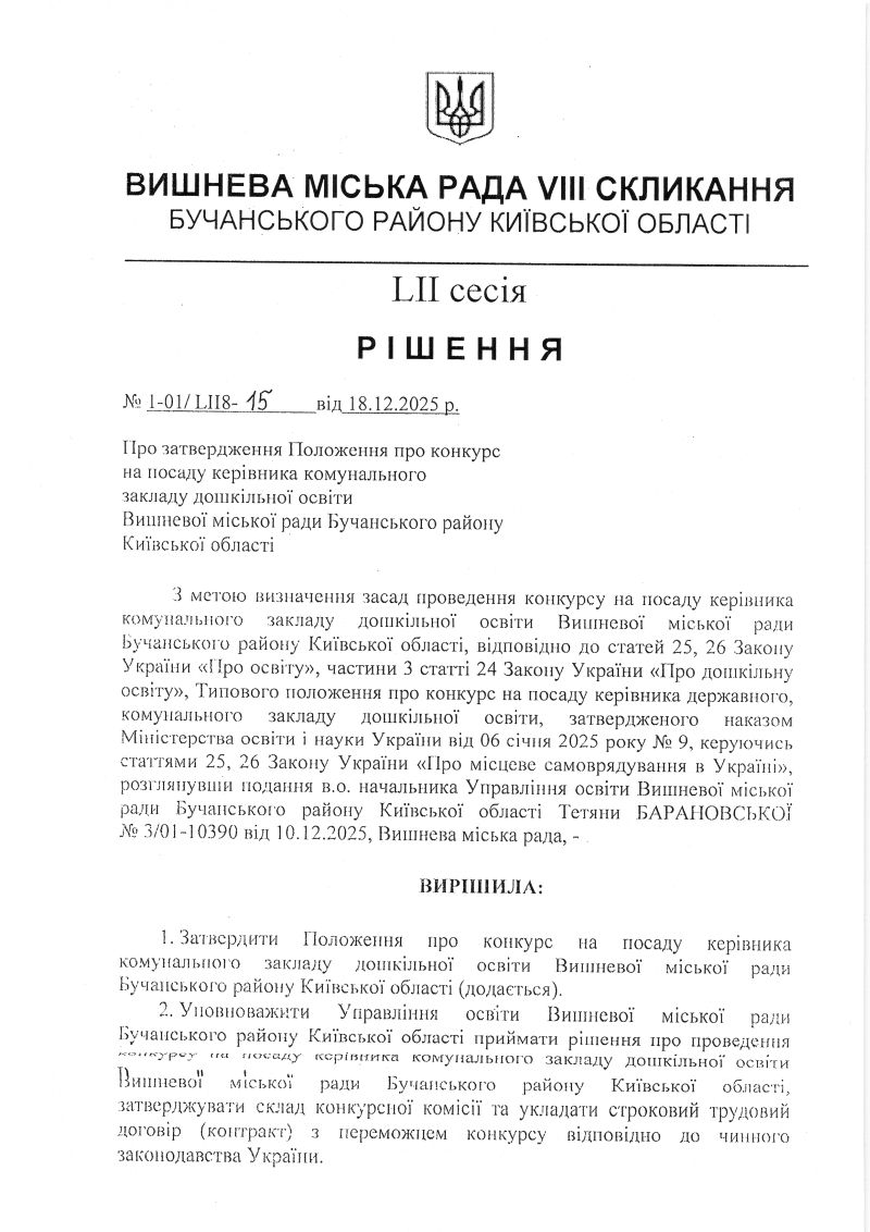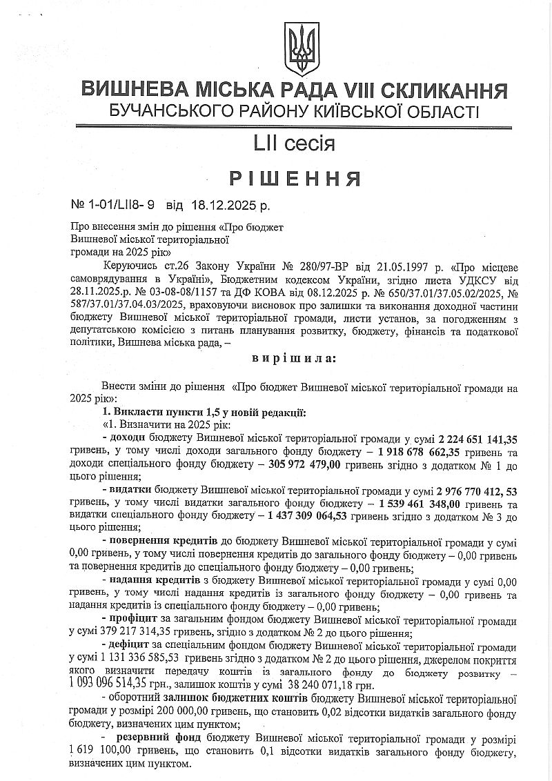 РІШЕННЯ LIІ СЕСІЇ VIІІ СКЛИКАННЯ від 18.12.2025 року