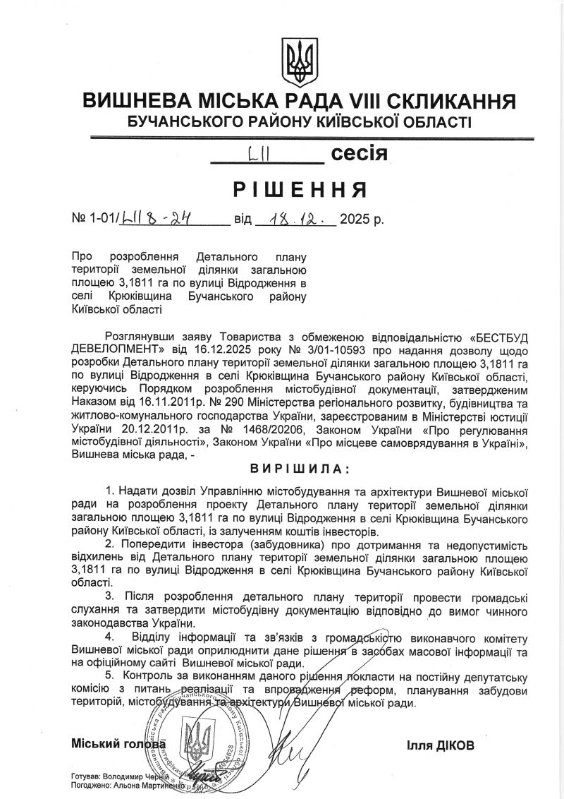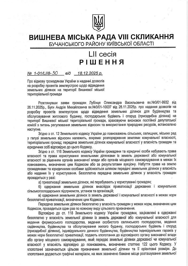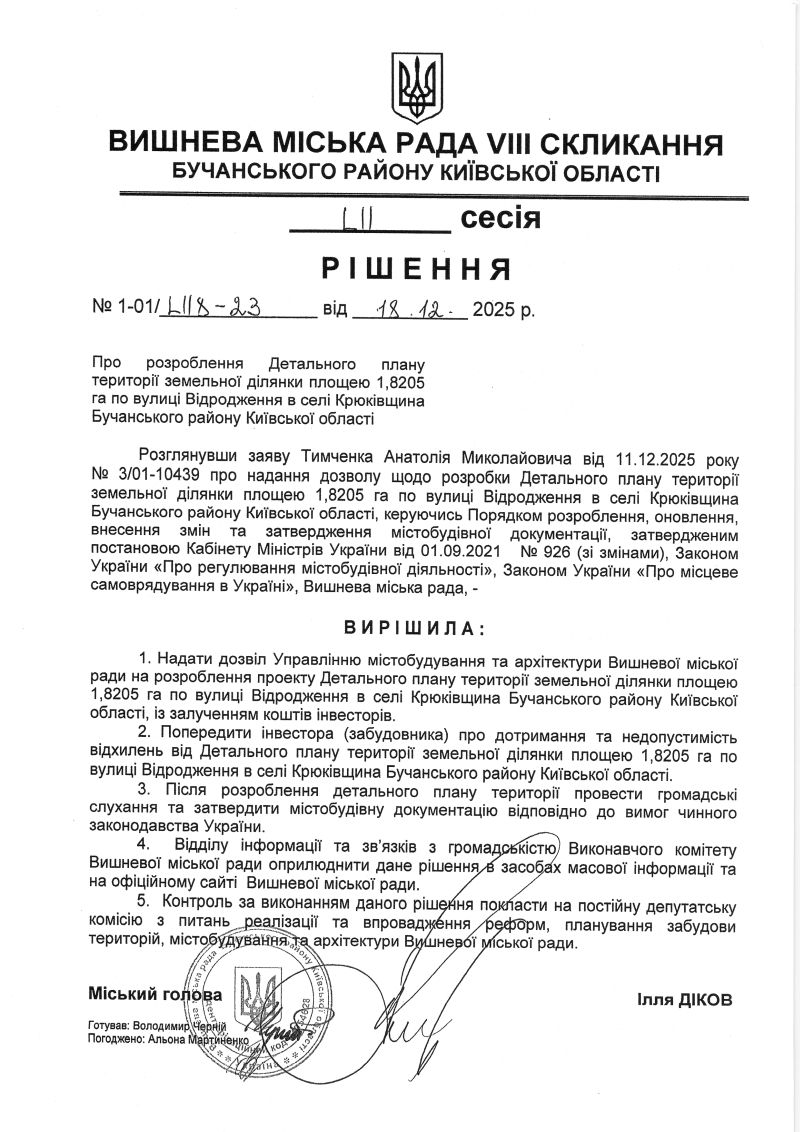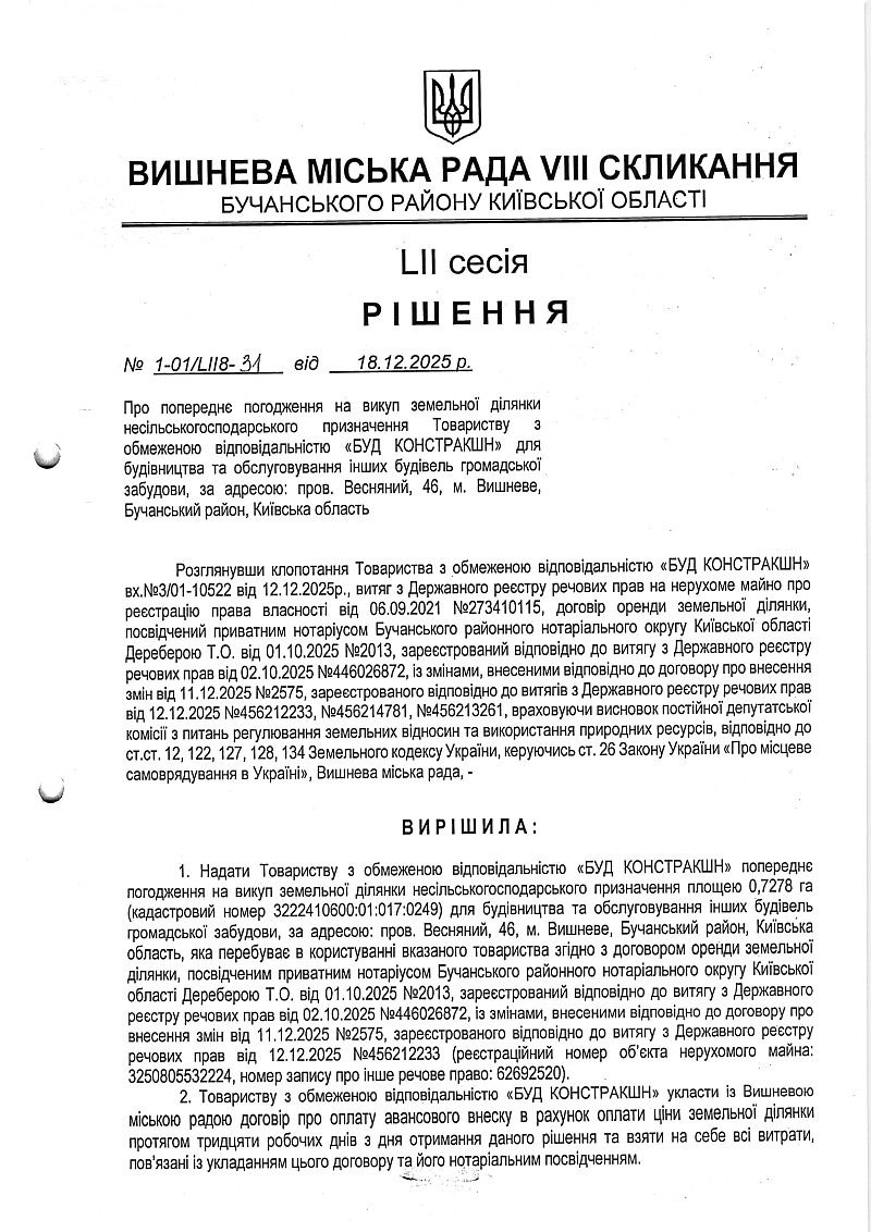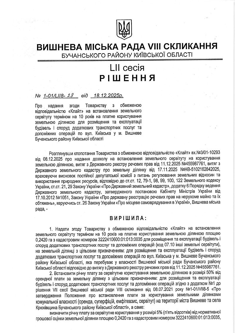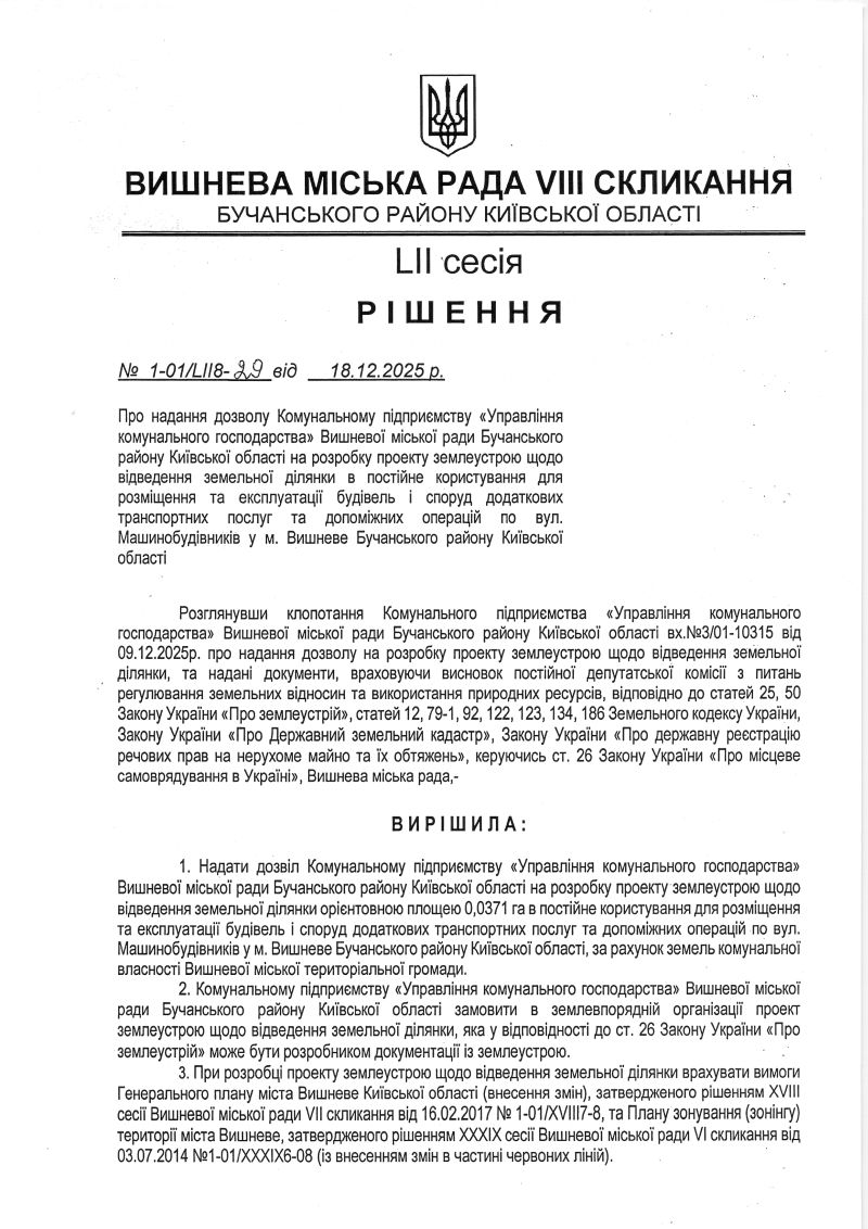 РІШЕННЯ LIІ СЕСІЇ VIІІ СКЛИКАННЯ від 18.12.2025 року