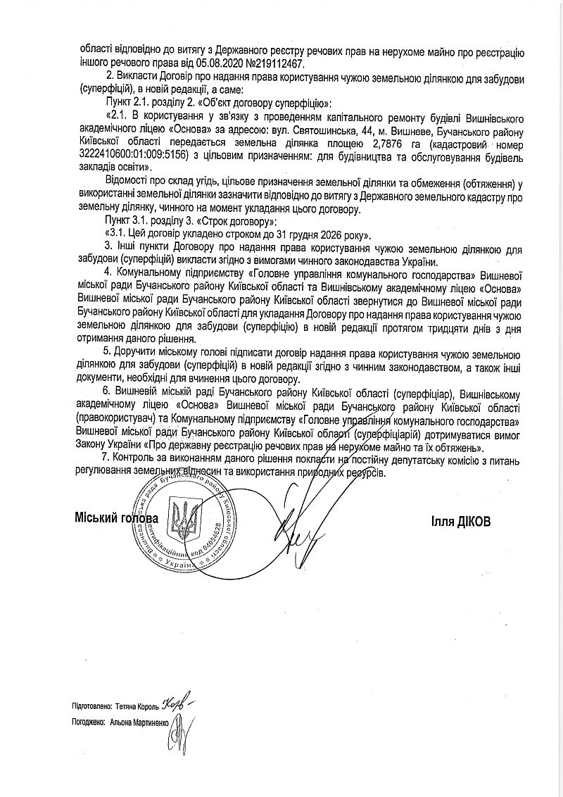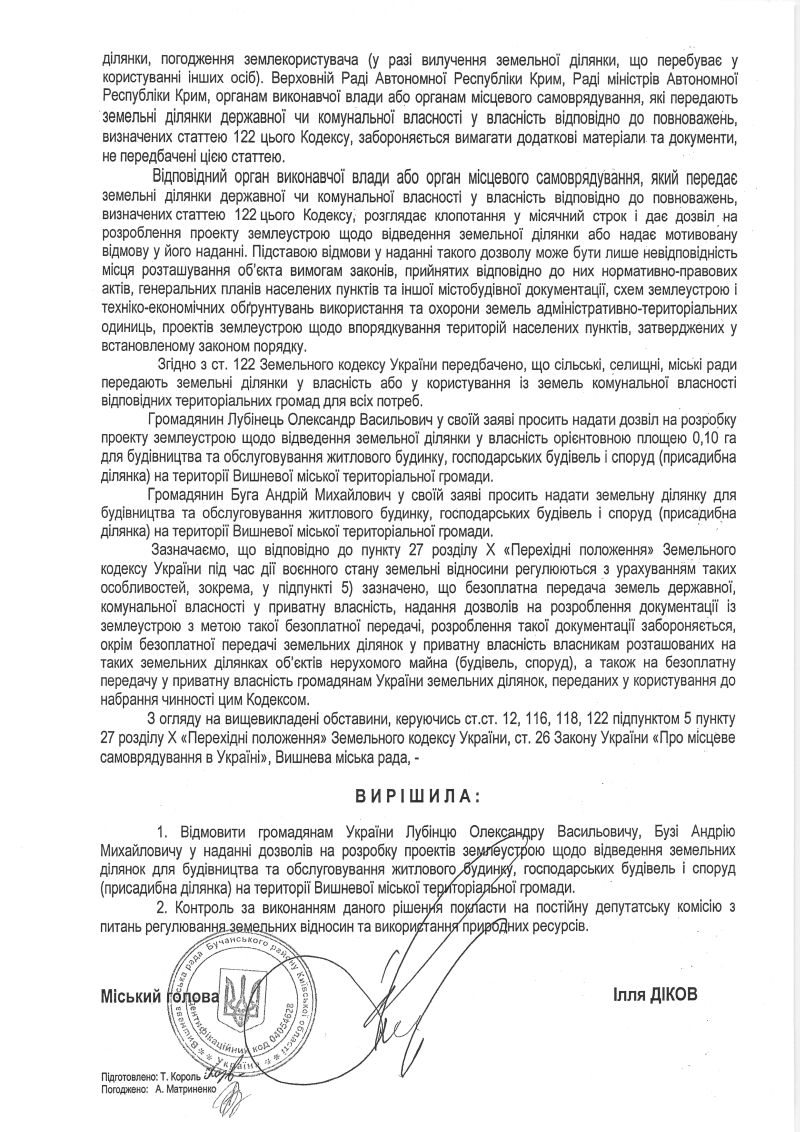 Контактні дані для звернень громадян Вишневої міської територіальної громади