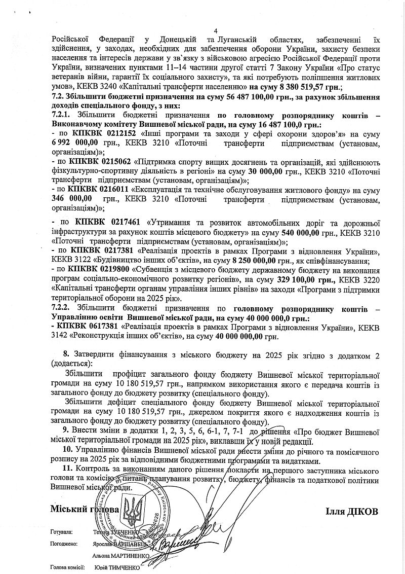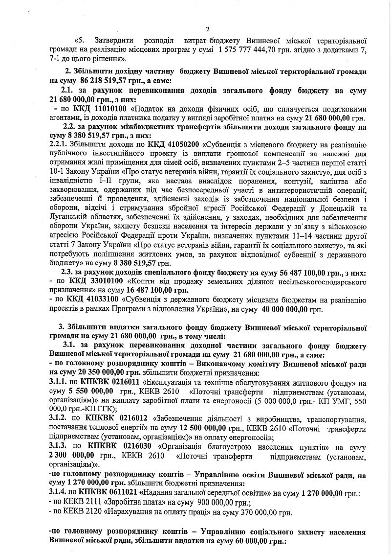 Бюджет Вишневої міської територіальної громади