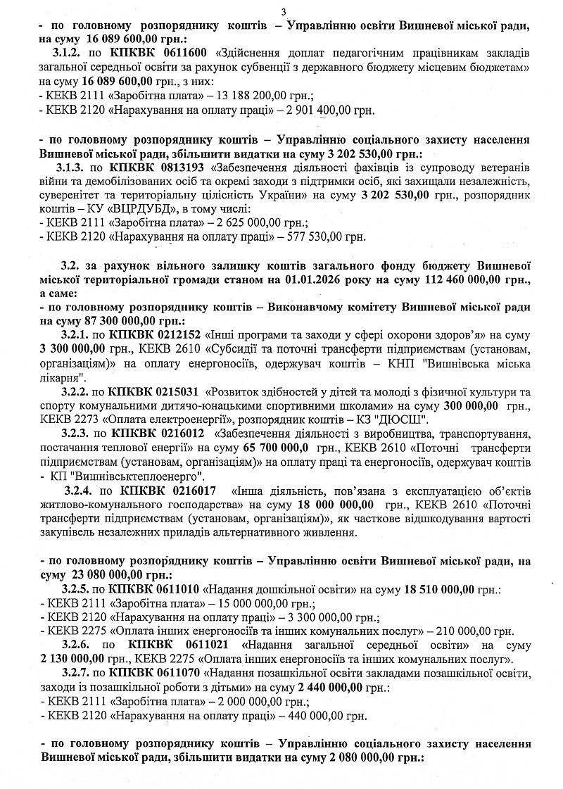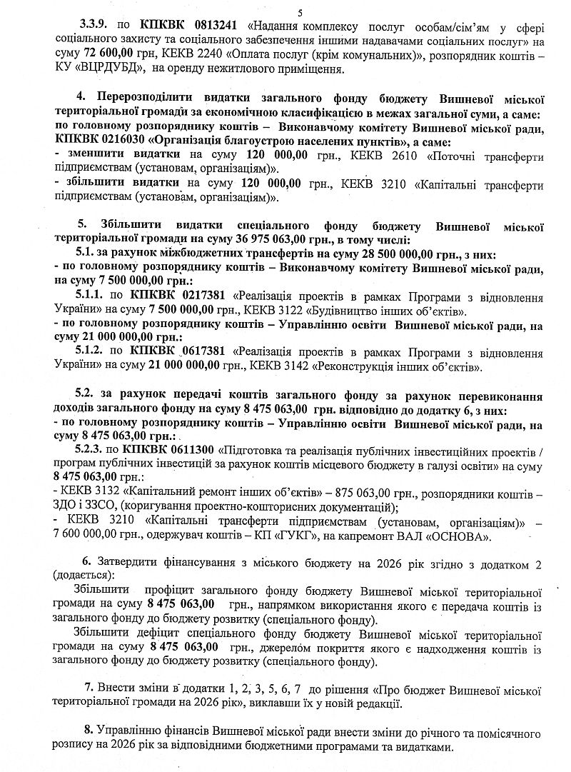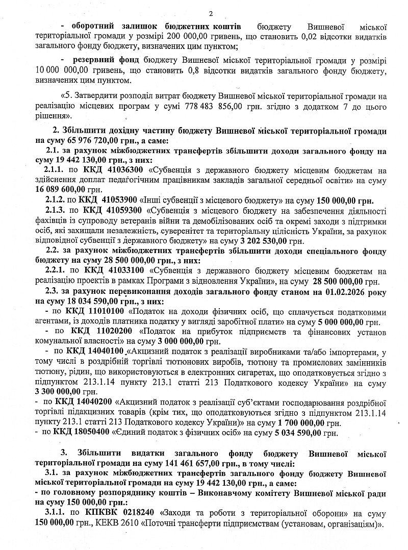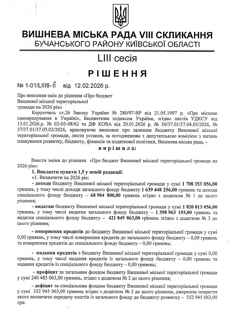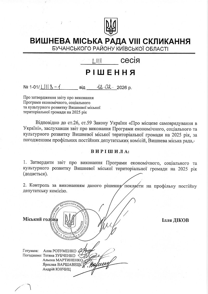 Подивитись: Звіт про виконання бюджету Вишневої міської територіальної громади за 2025 рік (1053400000)