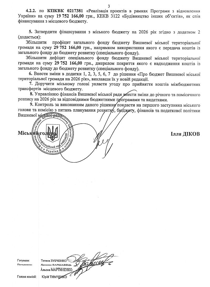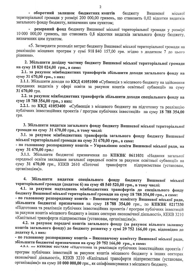 Бюджет Вишневої міської територіальної громади