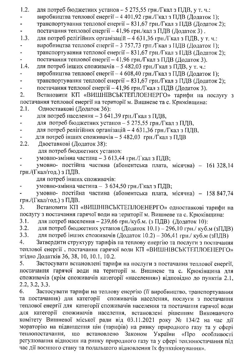 BackВиконкомРішення виконавчого комітетуРішення № 64/8 від 08.10.2025 р. Про встановлення тарифів КП "ВИШНІВСЬКТЕПЛОЕНЕРГО" на теплову енергію, її виробництво, транспортування та постачання теплової енергії, послуги з постачання гарячої води за категоріями споживачів на території